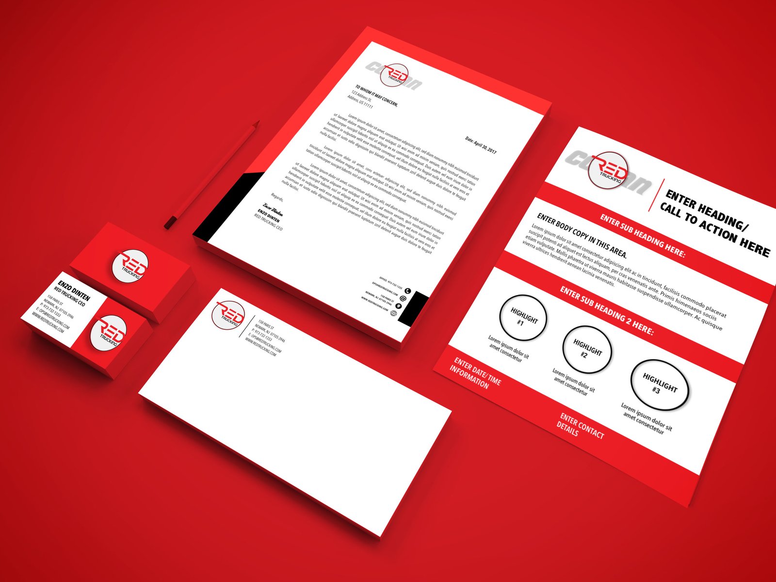 Create a brand identity that effectively portrays RED Trucking's culture and business.